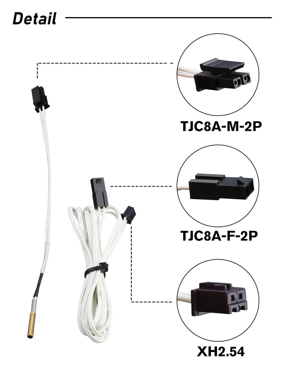 A custom made thermistor encapsulated into an easy to use cartridge package. This sensor are able to measure higher temperatures up to 280degC.If you want higher temperatures please choose our PT100 or PT1000 thermistor cartridge.